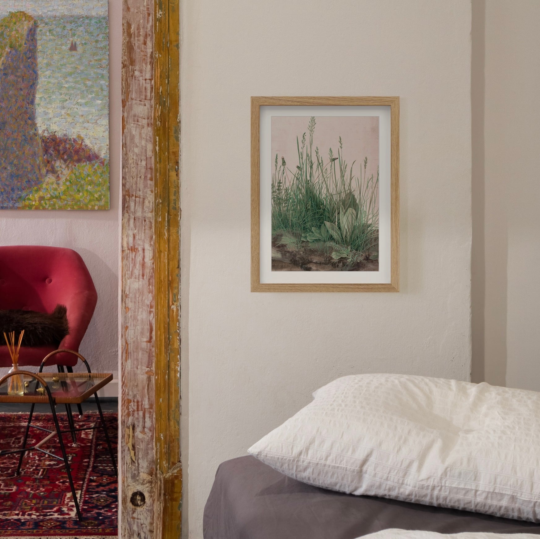 高精細なジークレー印刷により、微細な筆致や繊細な陰影まで丁寧に再現し、淡いグラデーションや光のにじみも自然に表現されます。